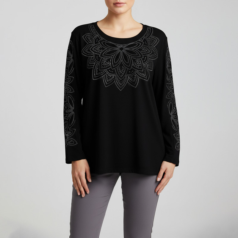 بلوز آستین بلند یقه گرد زنانه مدل مجلسی نگین دار