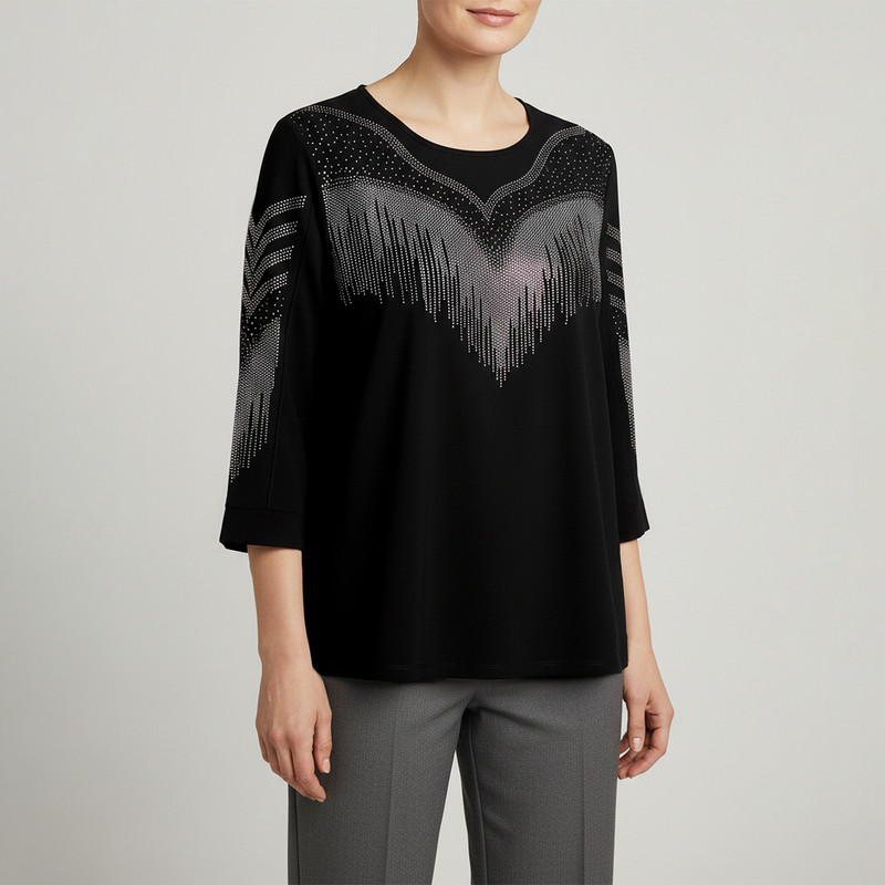 بلوز آستین سه ربع یقه گرد زنانه مدل مجلسی نگین دار