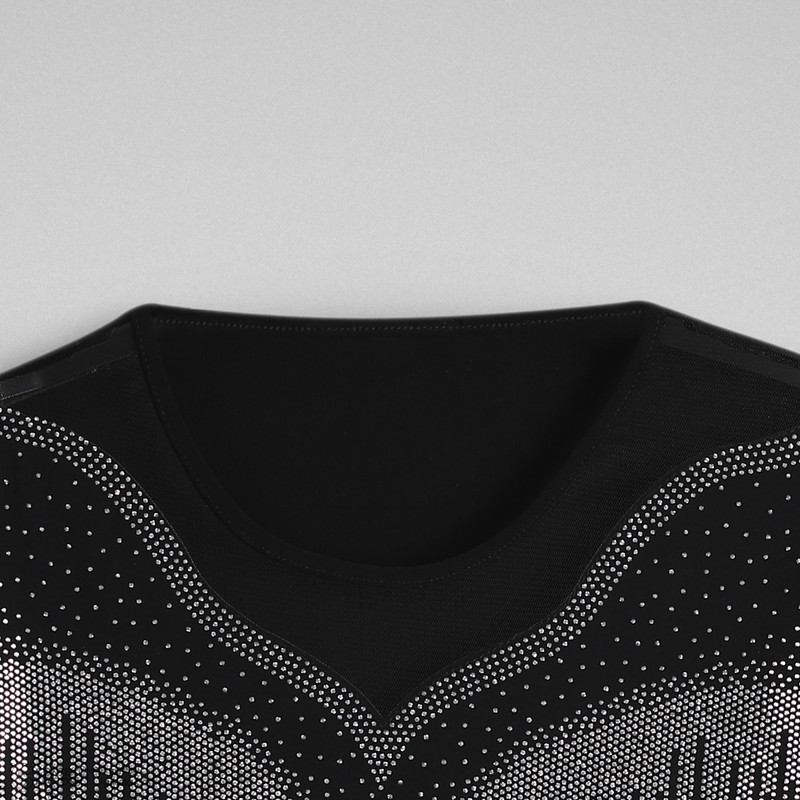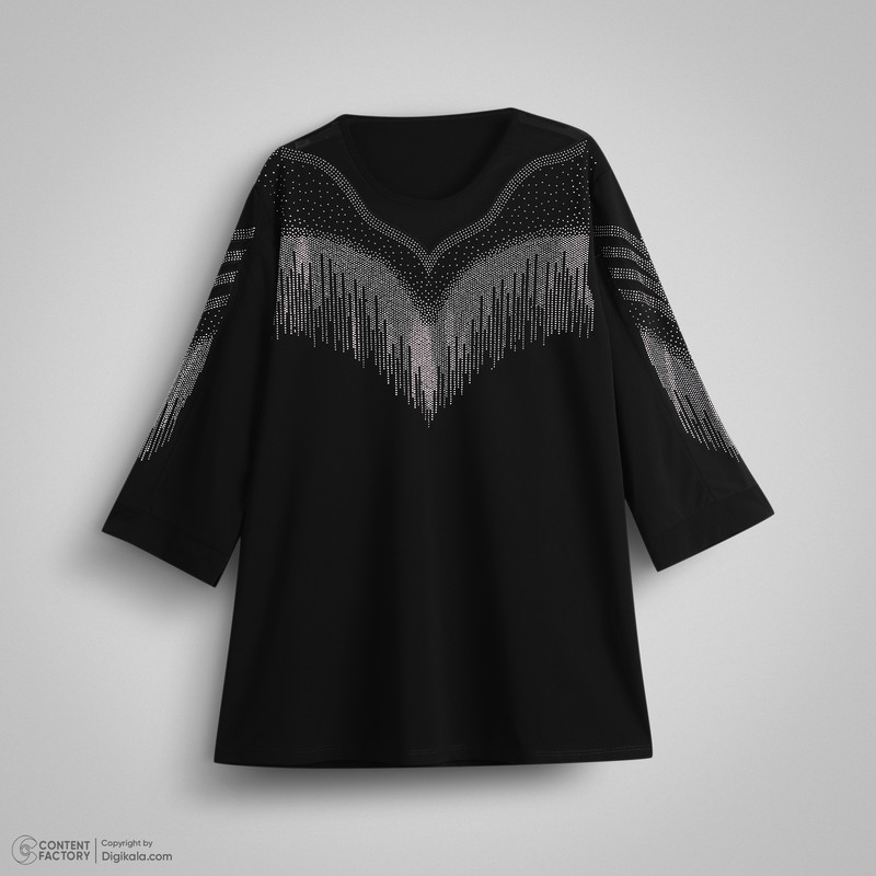 بلوز زنانه سایز بزرگ مجلسی دوخته شده ازپارچه جودون خاویاری دارای نگین بدون ریزش میباشد. نگین کار شده جلوی بلوز ، روی آستین هم کار شده و بدون ریزش میباشد.